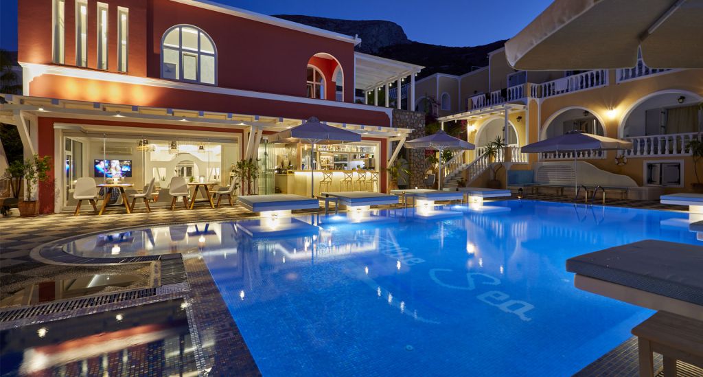 Graciously located in the southeastern coast of Santorini, Blue Sea Hotel is a haven of relaxation, steeped in the cozy atmosphere of its magnificent setting. Just a stone’s throw from the superb Kamari beach, our sanctuary for families and newlyweds encompasses the waterfront's charm. Unwind in a profound stay experience at our pool area. In an inspiring environment, three swimming pools are crowned by our garden's lush greenery.